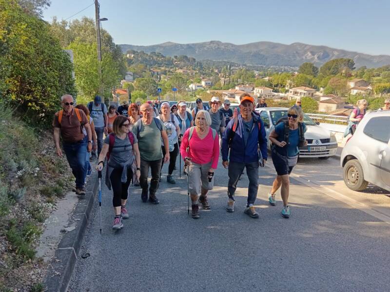 Départ de la randonnée, après une visite au cimetière de la Treille où Marcel Pagnol repose auprès de son épouse Jacqueline et de sa fille Estelle, jusqu’au vallon des Escaouprès.
