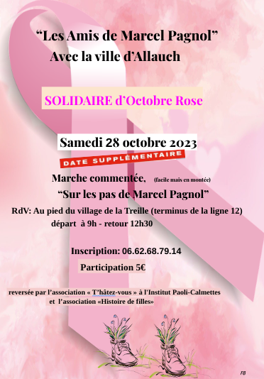L'Association "Les Amis de Marcel Pagnol", solidaire d'Octobre Rose, organise une marche commentée "sur les pas de Marcel Pagnol.