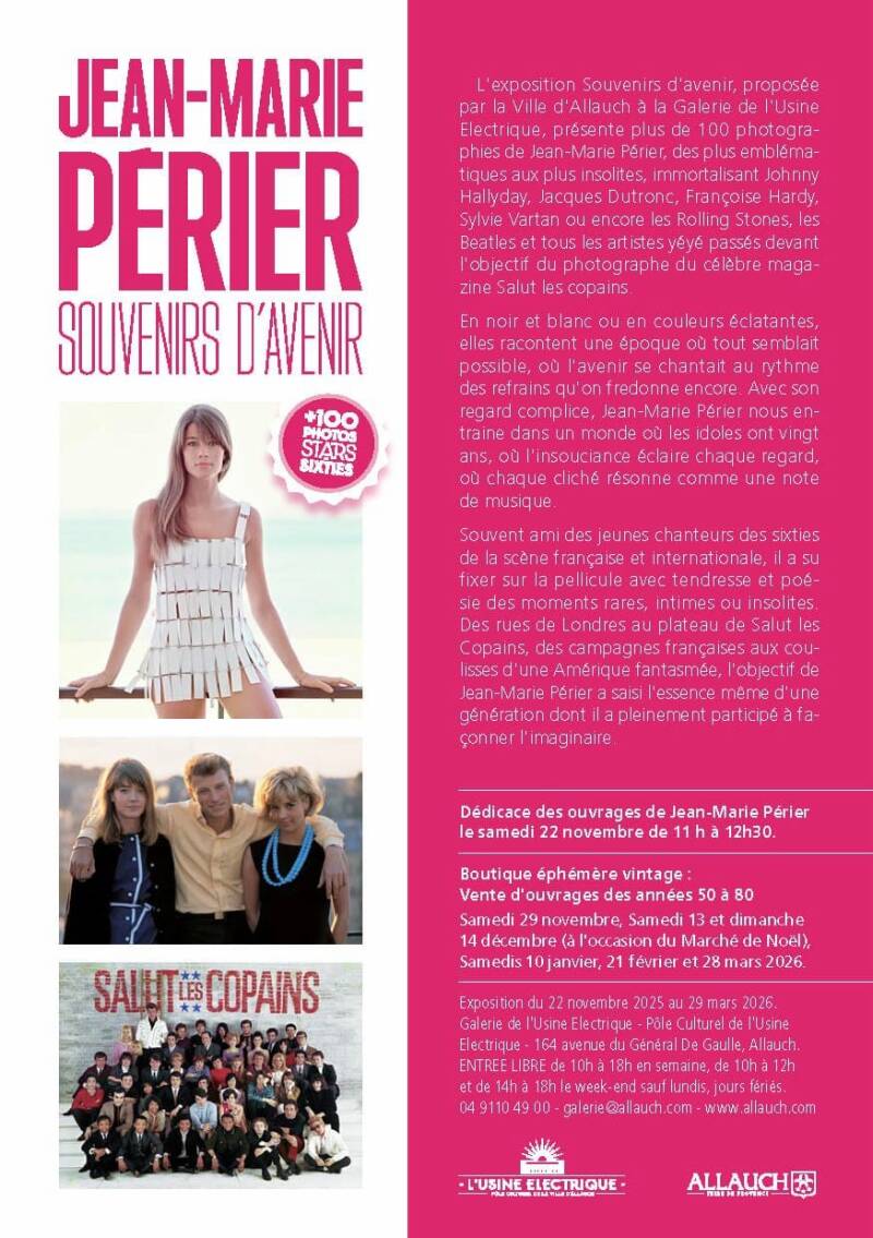 🔎 L’exposition « Souvenirs d’Avenir », proposée par la Ville d’Allauch, présente plus de 100 photographies de Jean-Marie Périer, parmi des plus emblématiques, immortalisant Johnny Hallyday, Jacques Dutronc, Françoise Hardy, Sylvie Vartan ou encore Mick Jagger, les Beatles et tous les artistes « yéyé » passés devant l’objectif du photographe du célèbre magazine “Salut les copains”.